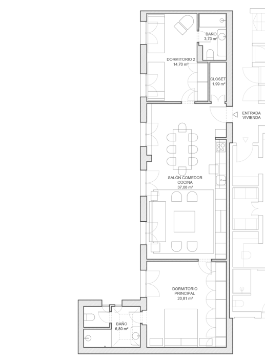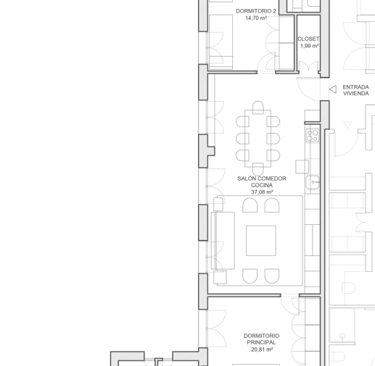 La vivienda cuenta 2 dormitorios, un salon comedor con cocina integrada y 2 baños