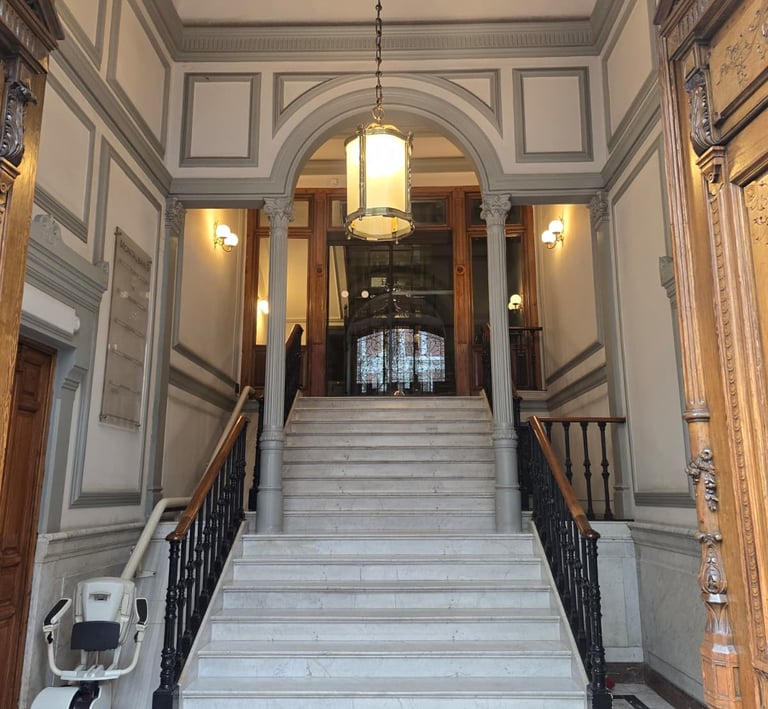 Ubicada en la calle Montalbán, en pleno barrio de Jerónimos, una de las zonas más exclusivas y representativas de Madrid. A escasos metros del Parque del Retiro, en un entorno residencial tranquilo