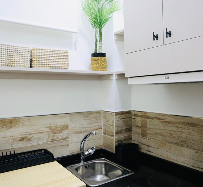 La vivienda cuenta con una cocina funcional, un baño completo y una estancia principal que integra sala-comedor y zona de descanso