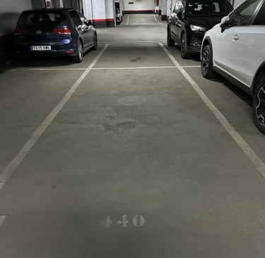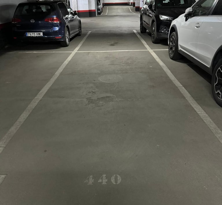 Plaza de garaje amplia, apta para vehículo de tamaño medio o grande, con espacio suficiente para maniobra cómoda